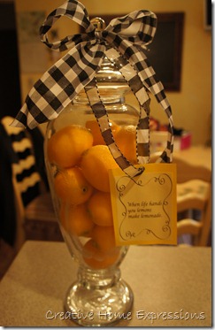 Finally, an apothecary jar on my kitchen counter filled with faux lemons.